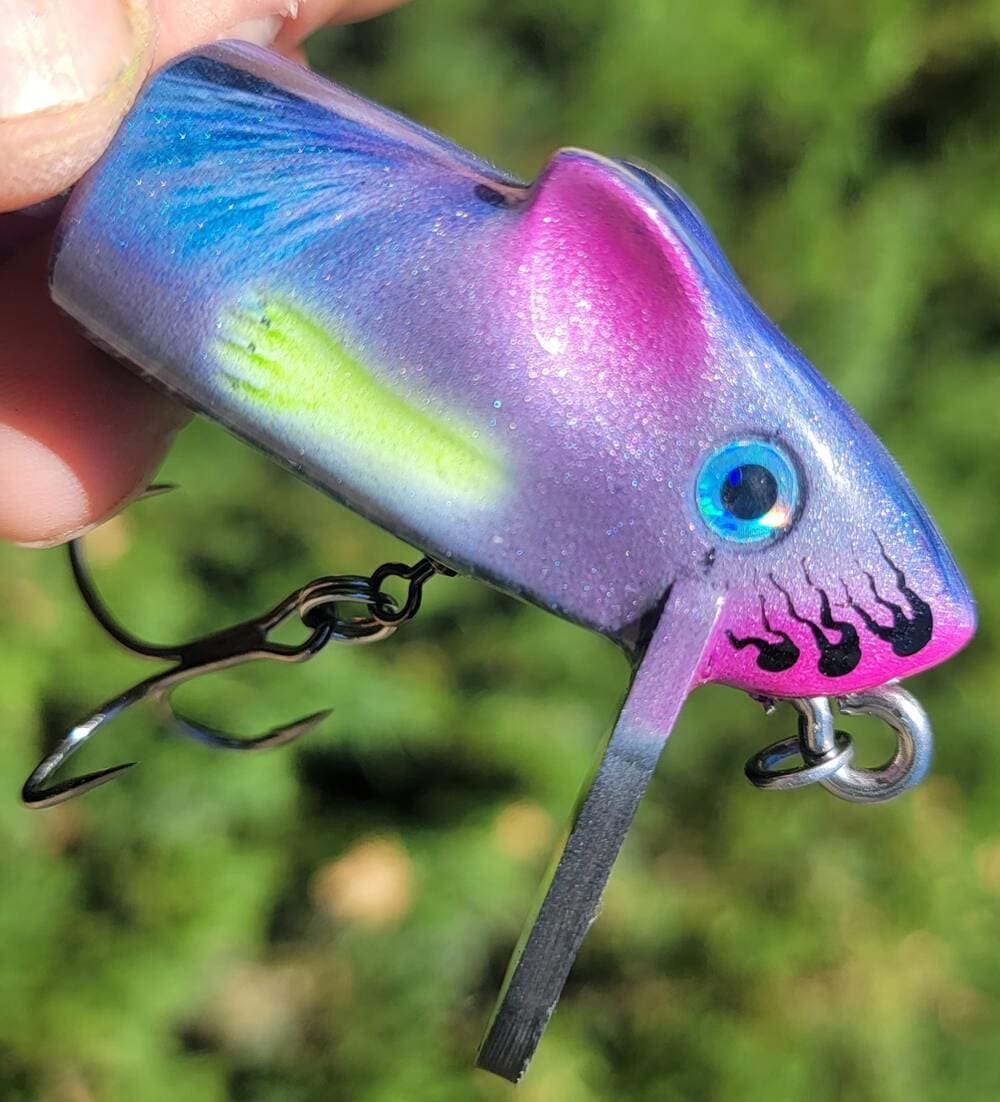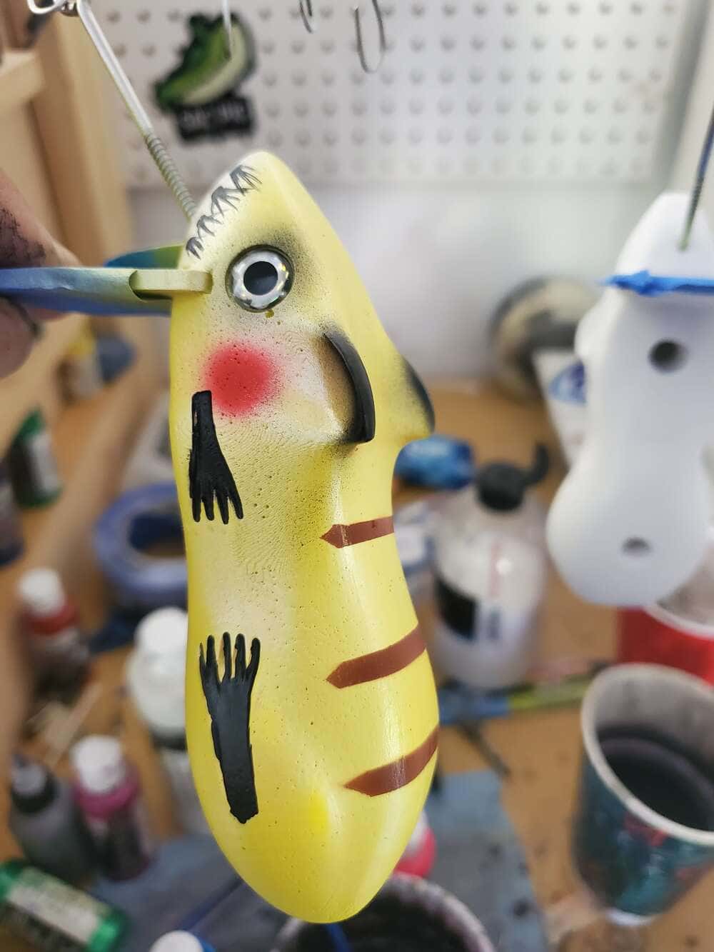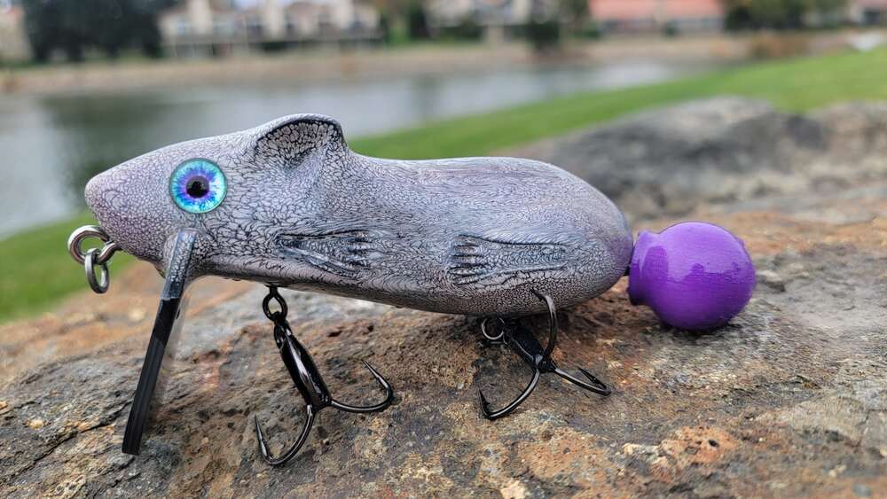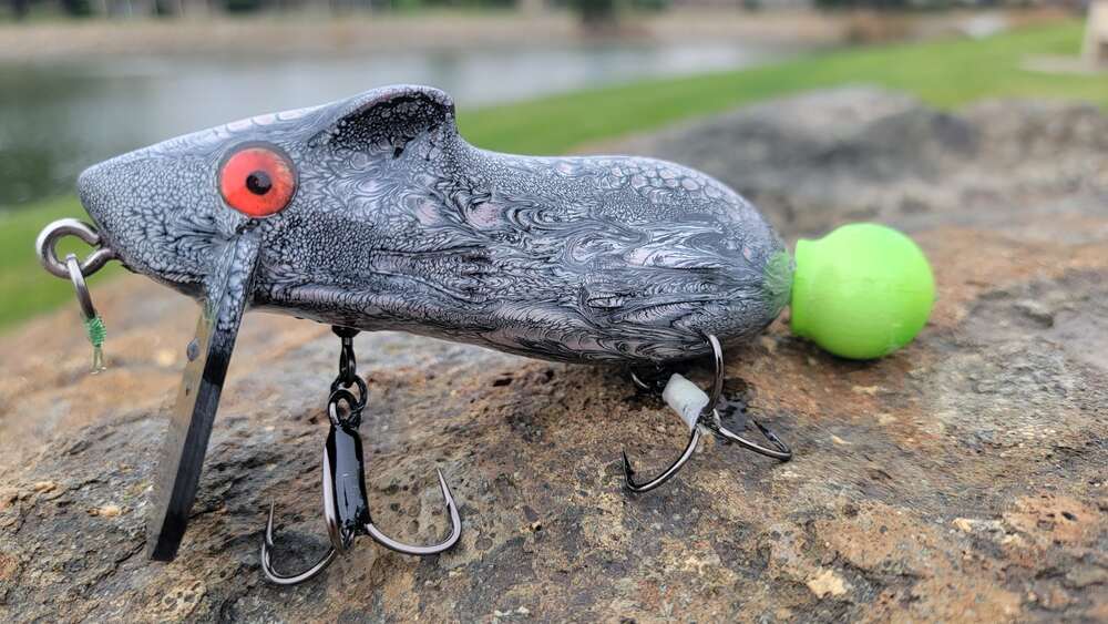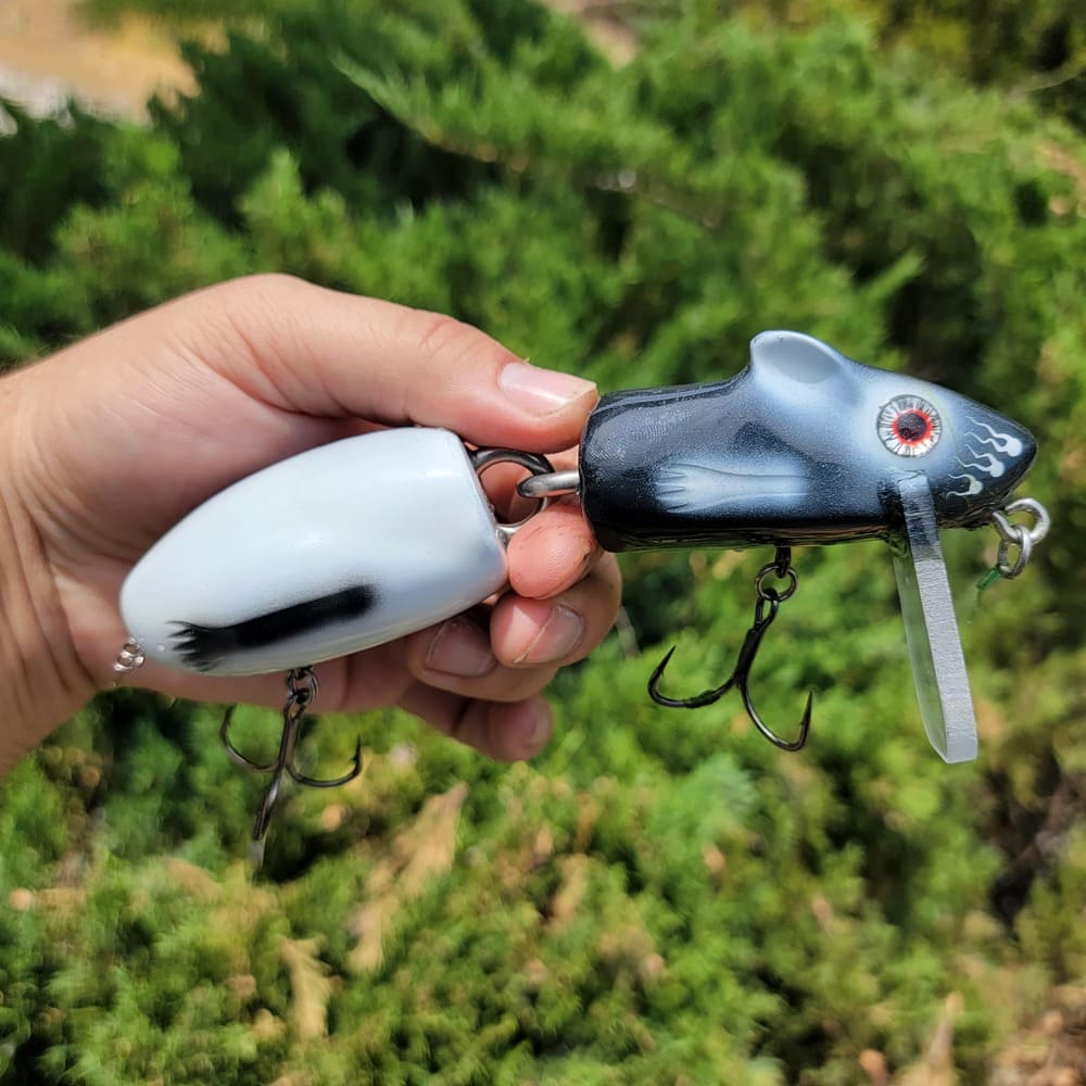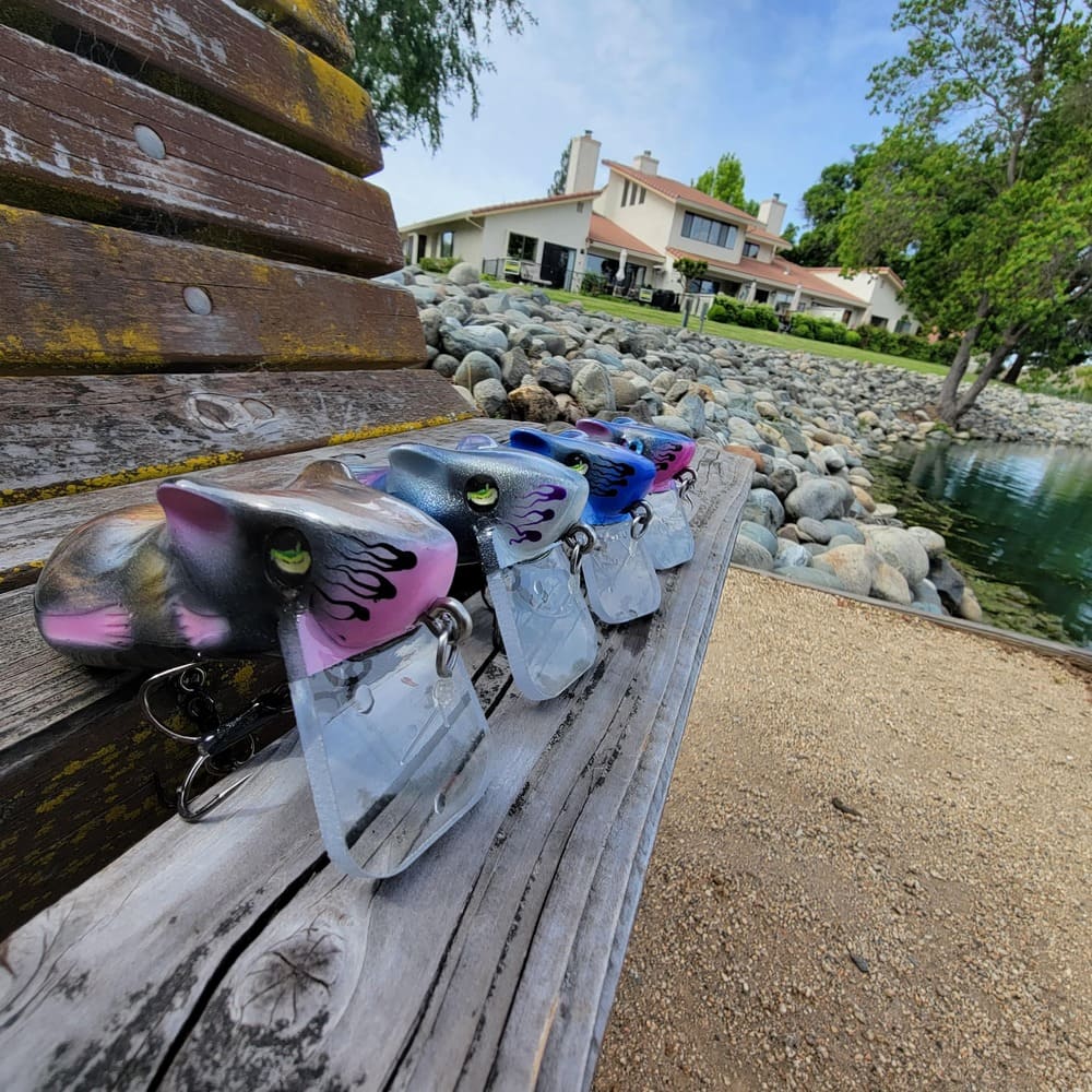 A gallery of custom painted Mischief rat lures. Note: some are limited one-up pieces.